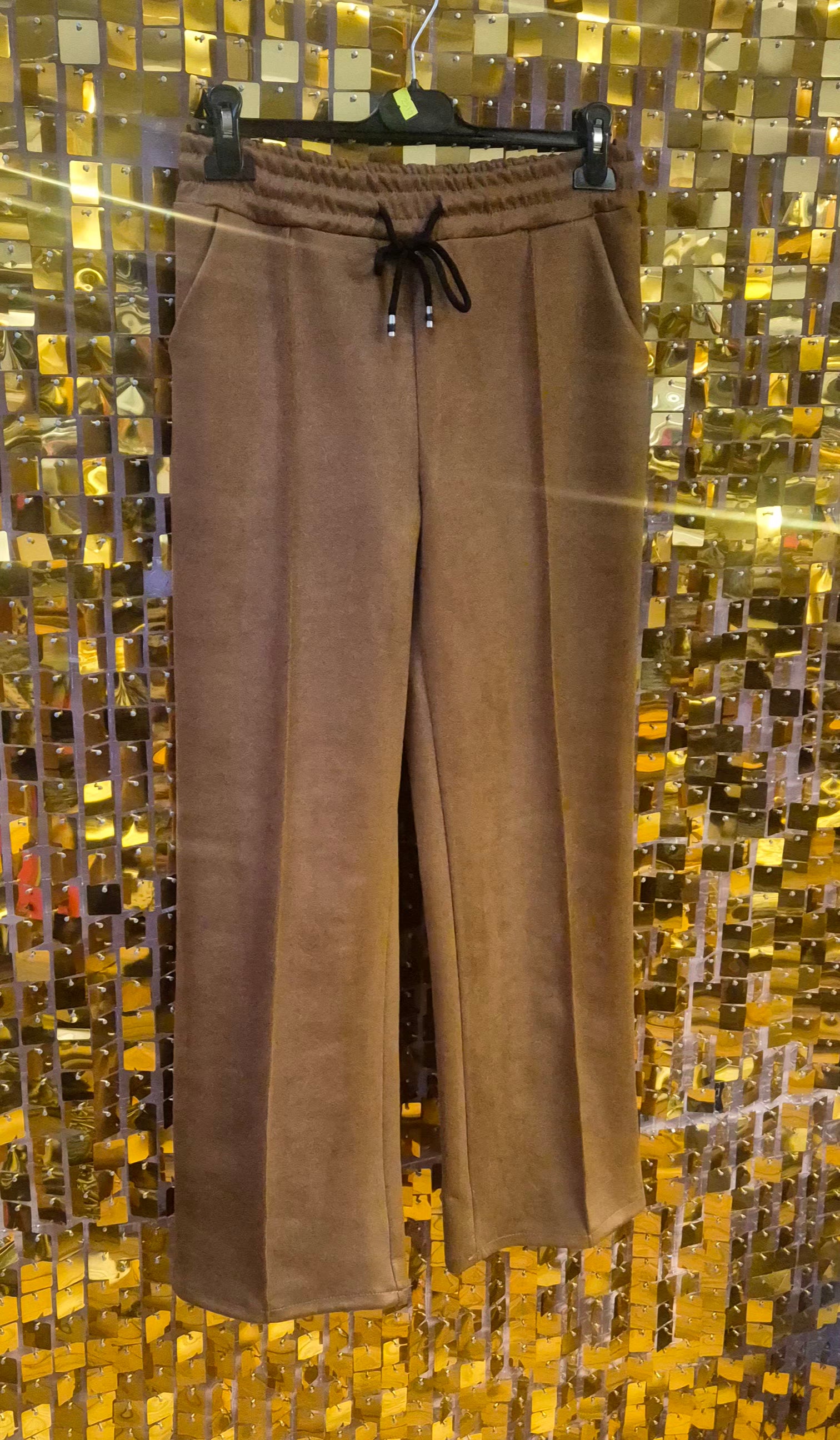Gorgeously soft jogger style trouser with elasticated waist with tie. Front pockets and a stylish appearance.