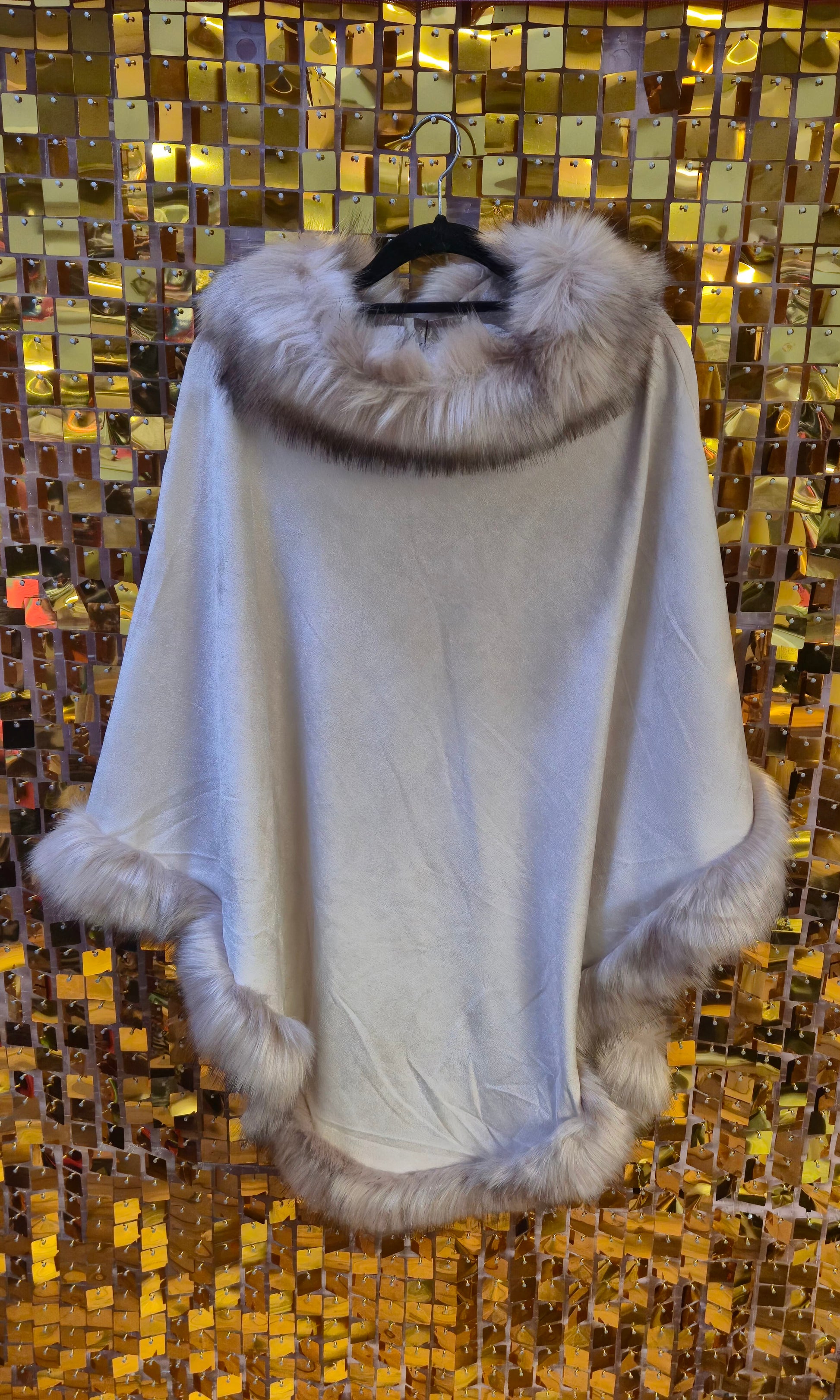 Gorgeous Suede Poncho by Jayley with a Faux Fur trim. One Size fits all. Bring a bit of Chic to your Autumn outfits.