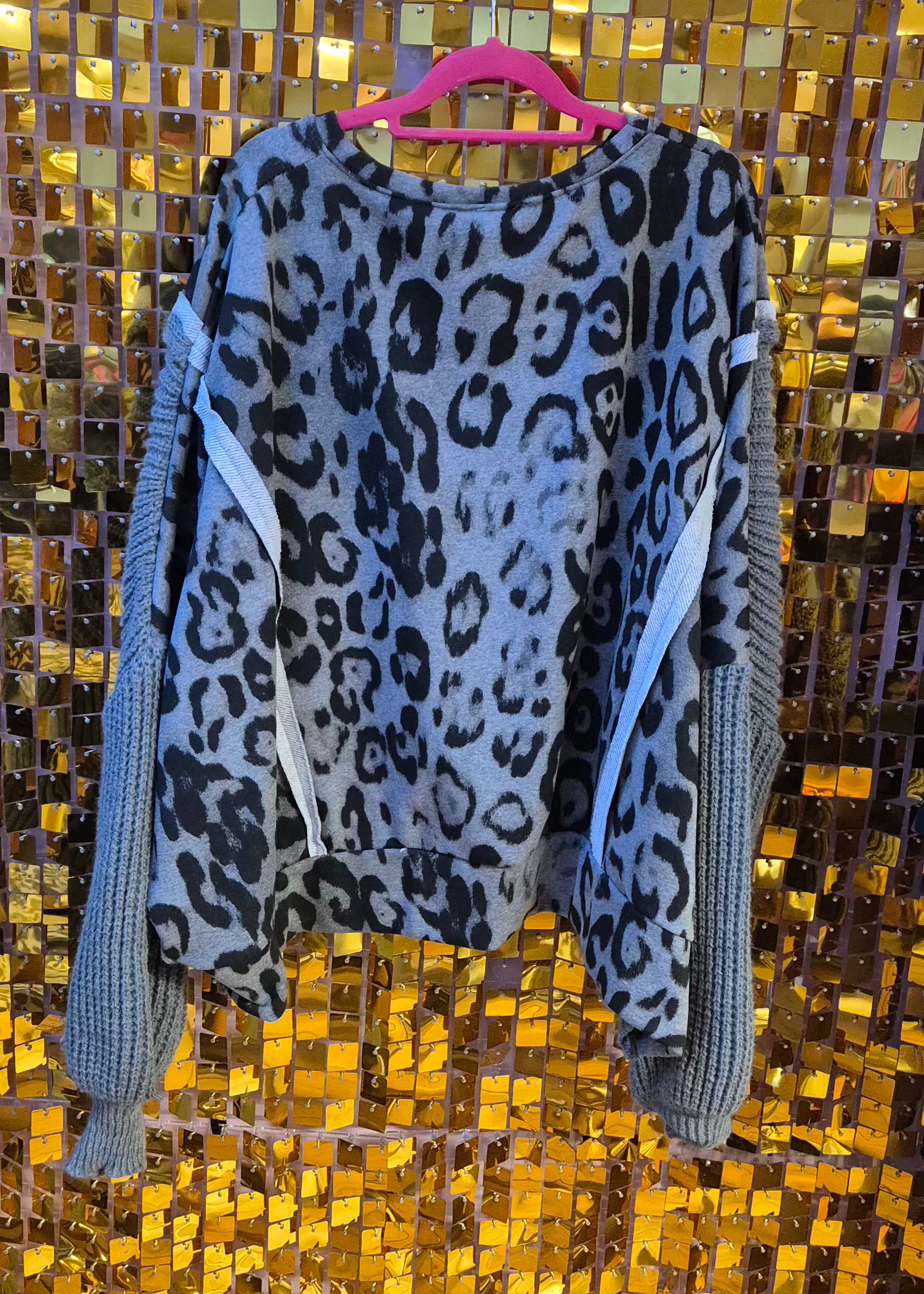 Knit Sleeve Leopard Sweater