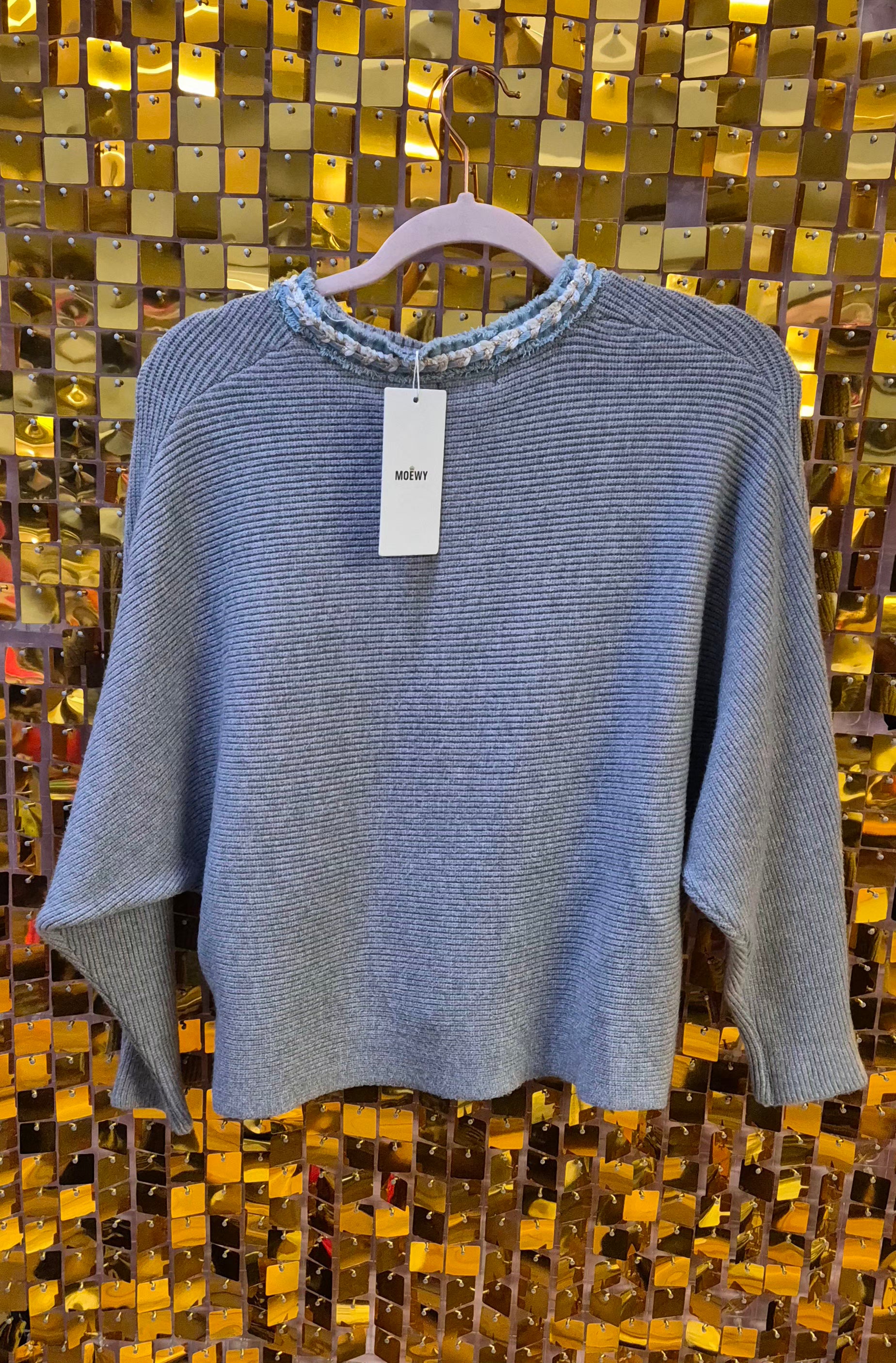 Frayed detailing, ribbed Cardigan. Faux front pocket appearance with silver buttons and a gold thread woven into collar/frayed edging.