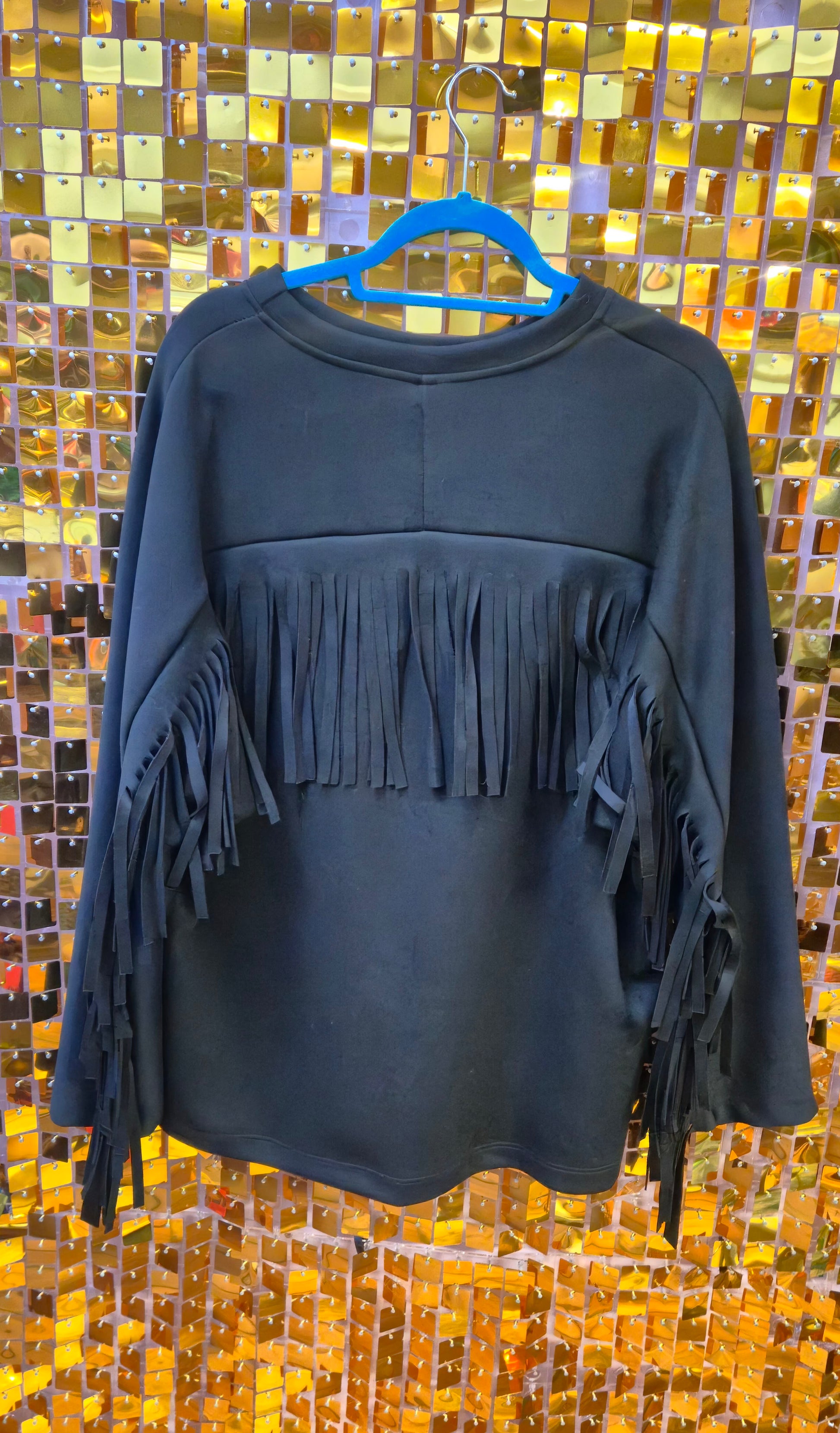 Western style sweater with fringe on the back and sleeves. Freesize up to Size 20